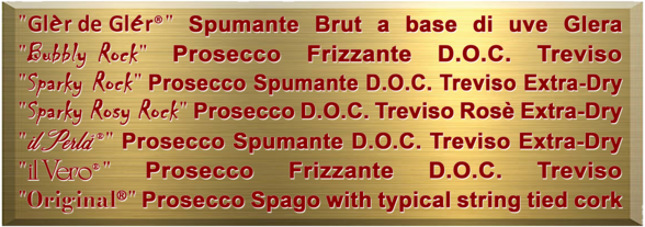 Discover CASA POLES®' exquisite collection of Proseccos, crafted from the finest Glera grapes of our properties in the renowned Treviso region of Northeast Italy. Our selection includes the elegant "Glèr de Glér®" Spumante Brut a base di uve Glera D.O.C. with its crisp dryness, the vibrant "Sparky Rock" Prosecco Spumante D.O.C. Treviso Extra-Dry featuring lively citrus notes, and the playful "Bubbly Rock" Prosecco Frizzante D.O.C. Treviso known for its bright effervescence. For a touch of romance, enjoy "Sparky Rosy Rock" Prosecco D.O.C. Treviso Rosè Extra-Dry with its delicate floral aromas, while "il Perlà®" Prosecco Spumante D.O.C. Treviso Extra-Dry offers a luxurious and balanced flavor profile. Experience authenticity with "il Vero®" Prosecco Frizzante D.O.C. Treviso, boasting a smooth and lively character, and embrace our origins with "Original" Prosecco Spago — the authentic wine originating from centuries-old productions with natural refermentation in the bottle, secured with a string tie around the neck of the bottle.